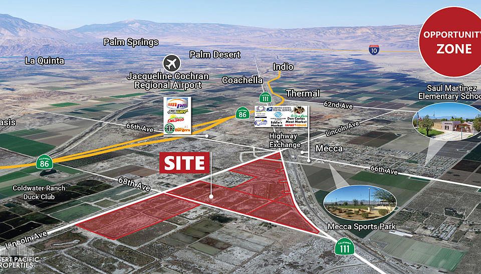 Ideal for future residential and mixed use development. Excellent frontage of Highway 111. Adjacent to the newly built Ave 66 overpass. In the Opportunity Zone with potential for tremendous tax benefits. Priced to Sell! Hwy 111 Traffic Count: 5,506 cars per day.