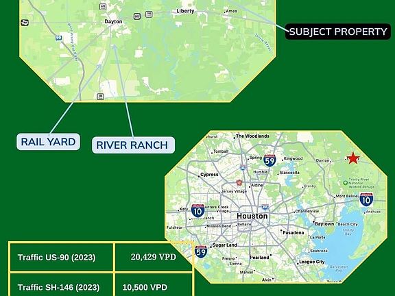Introducing 29 pristine acres on Highway 146 boasting 1800 feet of frontage, situated directly opposite a bustling shopping center featuring a Walmart Supercenter and various dining establishments. This strategically positioned property is exceptionally suited for flexible commercial and residential development opportunities.