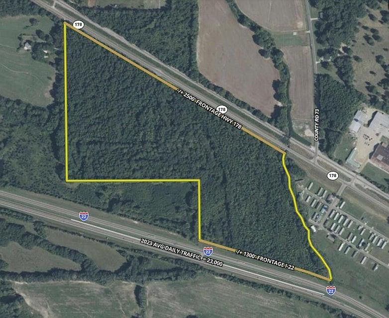 Great 65 ac tract of land for industrial, commercial, or many other development opportunities! 2,500 feet of Old Highway 78 frontage and 1,350 feet of Interstate 22 I-22 frontage!