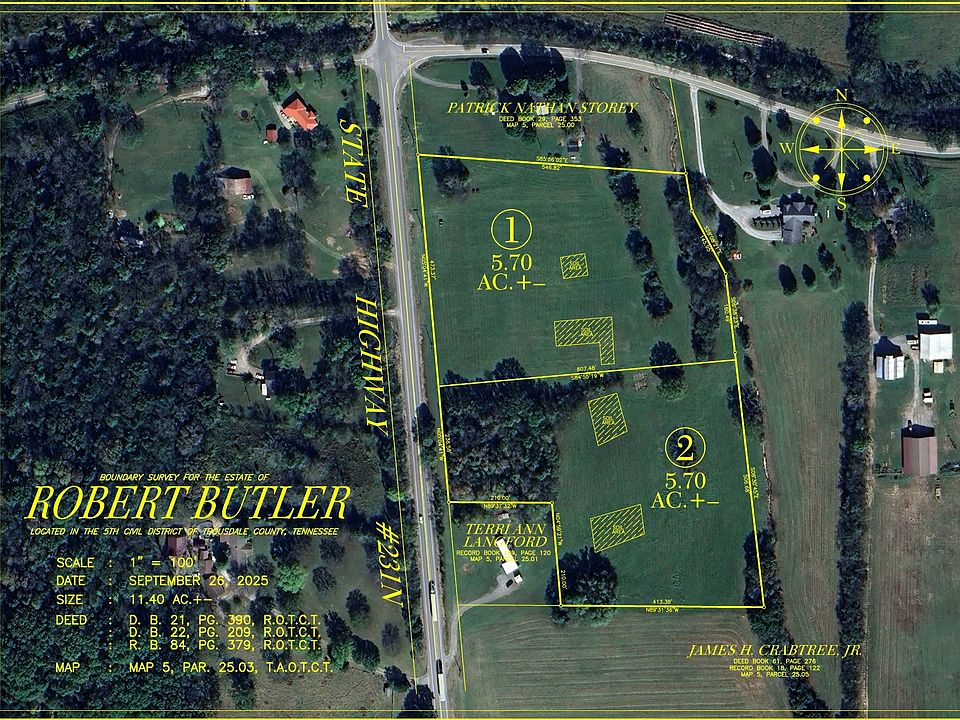 Real Estate Consists of a super choice 11.40 acres that has been surveyed, platted and staked to be sold in 2 beautiful tracts! Both tracts lay level to very gently rolling and are mostly open providing excellent building sites! Each tract is 5.70 acres in size and front on Hwy. 231 N. Tracts have been soils tested and approved for septic systems and also have access to both city water and high speed internet! Looking for a place to build or place that new? This property is being sold unrestricted by the seller and will allow for a home of any size! Location! Location! Property is within 20 minutes of both Gallatin and Lebanon and is just a short drive to Hartsville, Westmoreland and Portland! An awesome opportunity for you the buyer to purchase some super choice real estate in an excellent location! We also have some outstanding Non-Qualifying bank terms available! Come! Look! Buy!