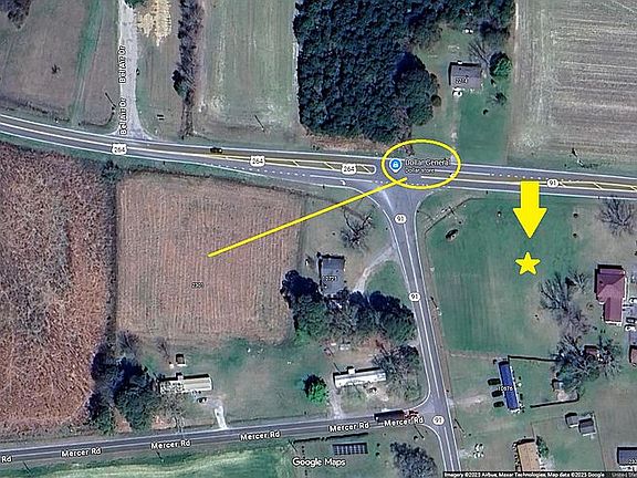 Flat, clear, dry land at a major intersection (HWY 264A & HWY 91) in rural Greene County. Perfect candidate for possible commercial rezoning. Brand new Dollar General retail store a few hundred feet away on the other side of the intersection. .45 acres for sale by owner.