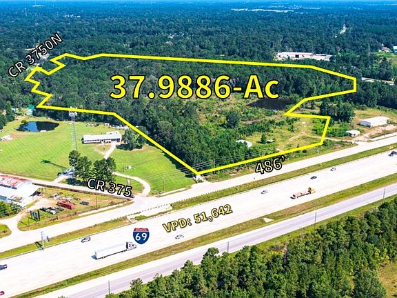 +/- 37.9886 acres of land in high growth area of Cleveland/Splendora. Property has excellent frontage with approximately 486 feet of land fronting US Hwy 59. Easy access to Hwy 105. Property has alternate multi-access through neighborhood – CR 3750 N. 3 Phase power available on site. Ideal use for property include industrial, RV, mixed-use, gas station and retail. Nearby landmarks include Demontrond Ford, retail such as Checkers and Fuel Maxx gas station and industrial including Mustang CAT, Jeff Martin Auctioneers and J-W Power Company. Unrestricted can be commercial or residential (as per owner - please verify).