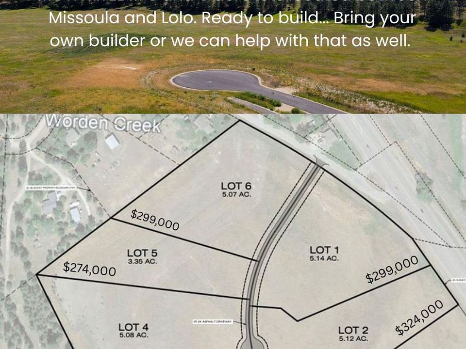 MOTIVATED!!! 5 acre parcel located between Missoula and Lolo. Ready to build... Bring your own builder or we can help with that as well...