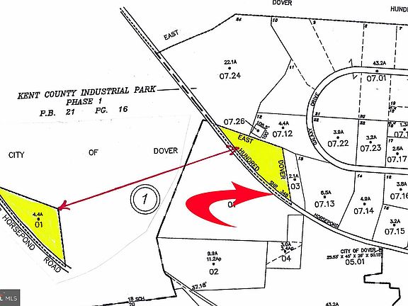 This property is approx 4.4 acres of vacant land zoned general industrial is located on the west side of Horsepond Road a short distance north of the Dover Air Force Base Civil Air Terminal. The property has access to all municipal utilities, is wooded, level, has approximately 1,074 feet fronting Horsepond Road, and is not located in the Flood Plain. The property is located near the Kent County Aeropark industrial park, and enjoys great linkage routes to U S Route 113 and SR 1.