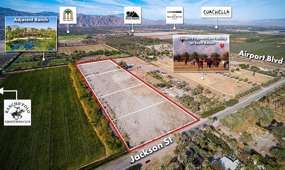 Lot #1 - with well. Rare opportunity to purchase 2 to 9.6 Acres in Vista Santa Rosa. Build your own private estate in a wonderful open country atmosphere. Two miles to Desert International Horse Show & one half mile to Rancho Polo. In an area of many equestrian estates with breathtaking views of the Santa Rosa Mountains. Just three miles to Empire Polo Grounds, home of the Coachella & Stagecoach Music Festivals. Nearby high-end country clubs such as The Madison Club, Andalusia Country Club, PGA West, The Palms, Hideaway, and many more! In Opportunity Zone with potential for tremendous tax benefits. lots can be sold individually or all together for $1,800,000.