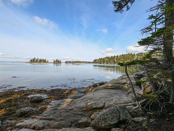 Seal Cove on Swans remains untouched. 2500+/- feet of bold granite coastline with pockets of sandy beach. Moss covered forest floor amid towering mature spruce and fir woodland on this 110+/- acre unencumbered parcel. Western views and sunsets that shimmer across the protected waters of the cove. You can hear the quiet.