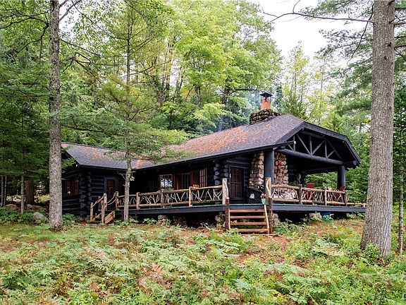 SECLUDED ADIRONDACK WATERFRONT WITH ACREAGE- Mays Pond is a one of a kind Adirondack retreat, for over 90 years, preserved forever in a conservation trust. The renovated year round main log cabin and guide's cabin sit on the peninsula of Mays Pond, surround by 348 acres of your own personal wilderness, and encompassed by thousands of acres of the pristine Pigeon Lake Wilderness. With 3300 ft. of shoreline, plus 40 acres of wetland featuring Constable Creek, you can drive, sled, or ski over on your own bridge. Additional features include two floating docks, lean-to, newly installed solar panel w/ battery shed, generator, and stone root cellar. Property is subject to a conservation easement designed to protect it's ecology. The future construction of an additional year round structure will be permitted under the terms of the conservation easement.