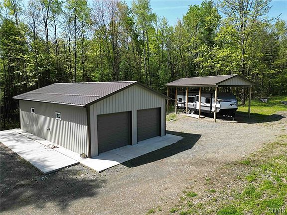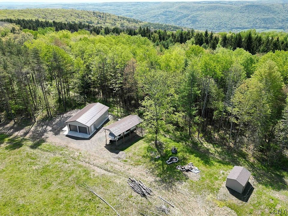 This hunting and recreational property on 67 acres includes a pole barn and a camper parking pad located in Hammondsport NY. Turn off the gravel road and down the private drive to this hidden recreational retreat in the heart of Finger Lakes Wine Country. Drive leads back 370 ft. to the recently constructed pole barn and covered gravel pad to park your camper. Unique opportunity to own a prime recreational property just minutes from Keuka Lake. Enjoy the peace and serenity of this very private location. Constructed in 2023, the 24 x 42 pole barn includes 400-amp electric service and concrete floors. Water can be supplied by an existing 500-gallon rainwater collection tank, filters and 65psi pump that will convey with the property. Covered 18 x 32 gravel camper pad also includes a 30-amp electric hookup. Maintained trails provide quality access throughout the property for hiking and riding. Nice mix of hardwoods, dense brush, food plots, and meadows provide quality habitat for a variety of wildlife including grouse, turkey, and deer. Enjoy the efforts of the current owner who has carefully managed the property for hunting including strategically placed tree stands that will convey.