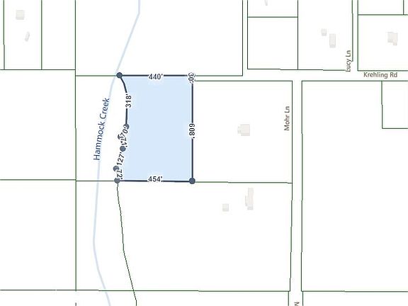 Secluded 8.7 acre creek front property at the end of Krehling Road. Beautiful heavily wooded natural state land fronting Hammock Creek on the west property line. Area is quiet with little traffic.