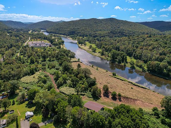 Riverfront Land With over 1,700′ frontage on the East Branch Delaware River, this land is perfectly situated for a campground/campsite or residential lot development (with approvals). The East Branch is known for its good fishing, canoeing and kayaking waters. Later in summer it gets warmer and is usually an ideal temperature for swimming. Gentle Terrain This property is almost completely out of the Floodway and has a long, flat beach area. A long, gentle approach from the street leads to a tree-line embankment, which overlooks the flat beach area. Over 694′ of road frontage gives ample access the land. An older concrete , wood and steel building of 3,500 square feet could make a nice garage or other use. Ripe for Development Because of the layout, and with proper approvals, several lots could be made for residential homes; perhaps 5 or more. Maybe good for cabin rentals or a typical campground could be constructed. This is a unique opportunity because the land is entirely inside the Village of Hancock corporate limits. Municipal water and sewer and natural gas may be available for site development. Alternately, this would make a gorgeous property for a single home estate.