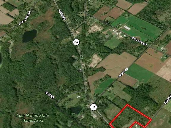 A new split and a brand-new opportunity! This 27-acre property sits across the highway from Lost Nation State Game Area, offering incredible potential for both recreation and residential use. Highlights: Excellent hunting for whitetail deer and turkey - food plots and fruit trees on property Mature timber and diverse habitat Road frontage on Hudson Road (Highway 34) and Lamb Road Undeveloped land could be a wonderful potential building site for your dream home or keep as is and enjoy the amazing hunting ground Don't miss your chance to own this Hillsdale County gem - whether you're looking for your perfect hunting retreat, a new potential homesite, or a mix of both, this property has it all!