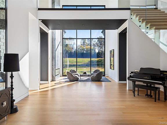 This is an exclusive opportunity to own a turn-key Modern Mansion, perfectly positioned on 5 manicured acres on the Gold Coast of Long Island. Constructed in 2022, this designer residence showcases oversized windows, 12ft ceilings, multiple marble gas fireplaces, pocket doors, glass railings and more. Both captivating and secluded, this residence offers the warmth of a traditional home with a contemporary flair. The first floor has a two story foyer, spacious formal living and dining rooms, an office and a lounge with a built-in bar and billiards area. The state-of-the-art modern kitchen is outfitted with top-of-the-line Viking appliances, Neo Marble countertops, numerous pantries and a sweeping center island with bar seating. Off of the kitchen is a beautiful light-filled eating area, with doors leading out to the backyard, an inviting family room and a bespoke homework area/ work space. The main house boasts 6 vast bedrooms, all with en-suite bathrooms and large closets. The Primary Wing is on the first floor and is outfitted with a private sitting room, 2 patios, a laundry area, 'His and Her' spa-like bathroom with a stand-alone tub and two glass enclosed showers, as well as 2 custom walk-in closets, one totaling over 3,000 Sq.Ft. of storage space. Upstairs also features a playroom with a media center, a crafts room, a matted fitness area and a massive flex room over the 8 car attached garage. Additional interior details include 4 stylish powder rooms, an elevator, 2 full service laundry rooms, a whole-house Smart Camera and Alarm System, a central vacuum system, surround sound speakers and an unfinished basement, with an indoor sports court, spanning the entire length of the home. The exterior is fashioned with a gated entry, a long blue stone and pebble driveway, a solid stucco facade, steel windows and decorative metal gutters. The property is elegantly landscaped and has a 60ft x 25ft Saltwater Heated Pool and Hot Tub, a Cabana with a Kitchenette, a fenced-in Dog Run and a covered patio with an outdoor lounge area, great for entertaining. In proximity to The Village of Locust Valley, the LIRR, charming local beaches and some of Long Island's most prominent Country/Golf Clubs. Zoned for the acclaimed Locust Valley Central School District.