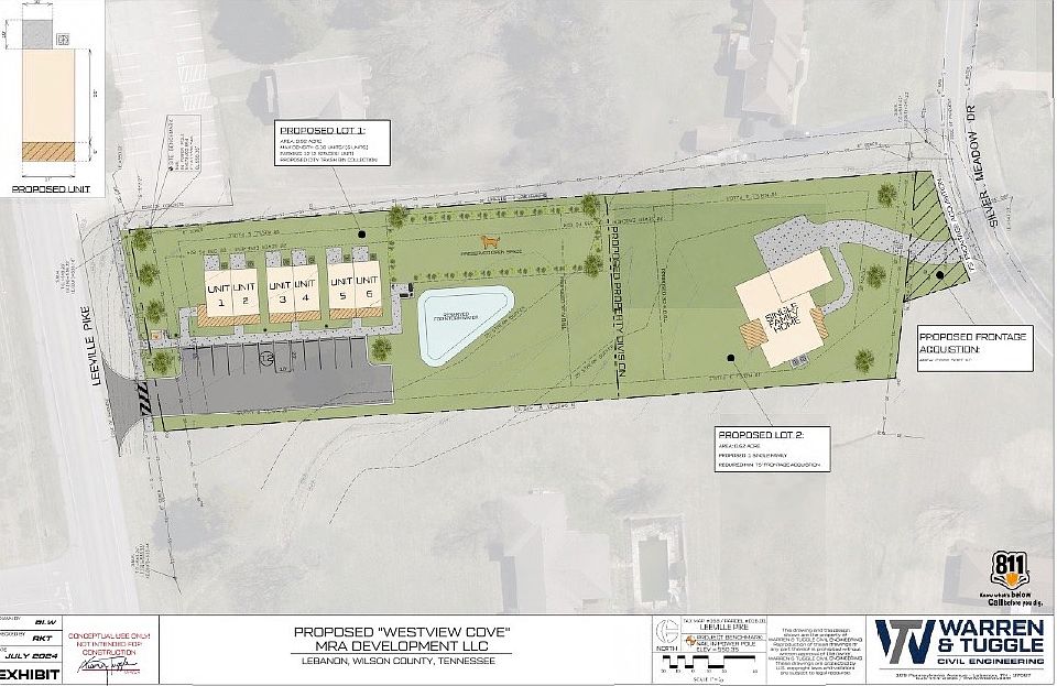 Attached is preliminary conceptual drawing. Current zoning will allow up to 6-8 units. Stewart Knowles Construction can build.