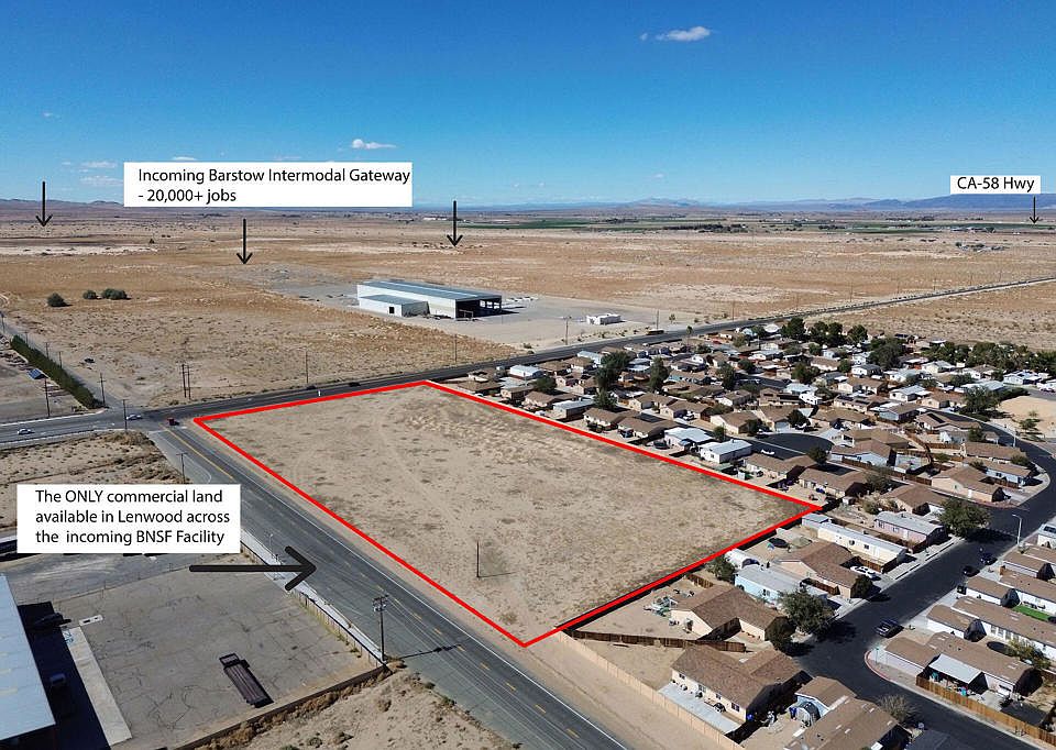 AMAZING Commercial Opportunity in the Path of Growth!Ready for development 5-acre corner parcel sits at a HIGH-VISIBILITY INTERSECTION in the Lenwood area of Barstow--positioned perfectly for future development. Zoned CN (Commercial Neighborhood), this property allows for a wide range of uses that serve the local community, including retail centers, restaurants, medical or dental offices, daycare or educational facilities, fitness or wellness centers, and professional offices.The site is the only commercially zoned land available in Lenwood, making it a truly rare opportunity. All utilities are available, including sewer, offering a streamlined path for development. Located DIRECTLY ACROSS from the NEW BNSF Barstow International Gateway (BIG)--a transformative $1.5 BILLION PROJECT expected to GENERATE OVER 20,000 NEW JOBS--this parcel is ideally situated to benefit from the massive economic expansion and workforce growth that will follow.With EXCELLENT EXPOSURE, FLEXIBLE ZONING, and PROXIMITY TO one of California's most SIGNIFICANT LOGISTIC DEVELOPMENTS, this property is perfect for developers, investors, or owner-users looking to capitalize on Barstow's next wave of growth.