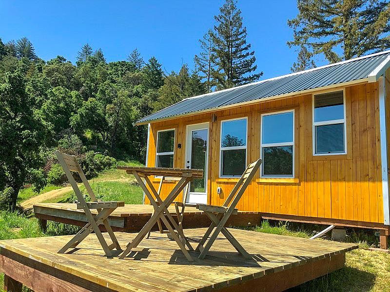 Cradled in the Santa Cruz Mountains on 36+ acres sits both a tiny house below and a sleeping cabin poised on a ridgetop with full sun and views. The newly built tiny home boasts 2 walls covered with windows and doors. The full glass front door and glass side door lead to 2 separate decks, one situated to beautifully capture the expansive tree top views. Off grid, no reports, creek runs thru bottom of parcel. Deeded water rights to Deer Creek and a 2,500 gal. water tank to facilitate a gravity fed water system, cleared flat area of approx. 1/2 acre +/- where a tiny sleeping shell sits. Private, quiet, 3 miles of mostly unpaved access road. Zoned TPZ resulting in lower property taxes. 45 minutes to world class surfing.