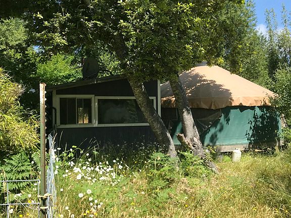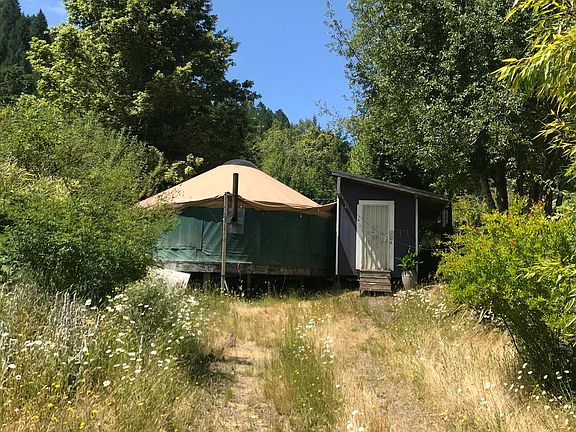 Immerse yourself in nature and solitude on this beautiful 80 acre hilltop property in the mountains of Humboldt. A lot of love and energy has been put into developing this property into a magical oasis. With a little work, the large garden areas and fruit trees will be bountiful once again. Benefit from the 2 adjoining yurt structures, complete with a kitchen, wood stove, mud room and a separate bath house. There is also a nicely built chicken coop, storage shed, fabric barn structures, greenhouses, and abundant spring water.