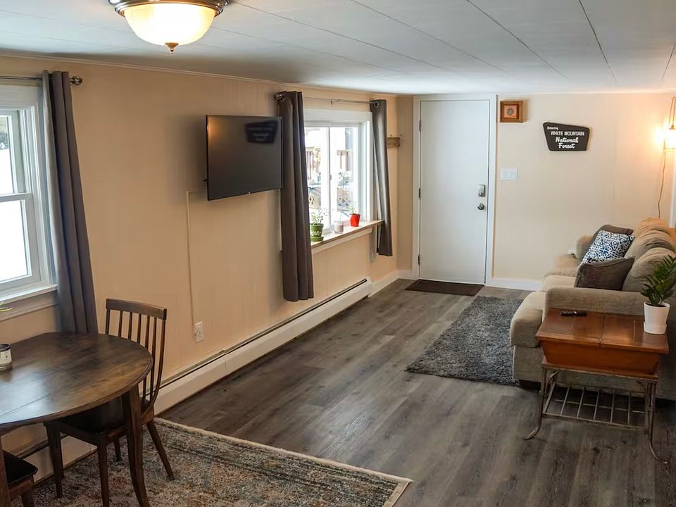 This unit is a 1 bedroom, 1 bath unit. Suitable for a single person or a couple and it was recently updated in the last few years. Owners live on site in the other side of the house. Laundry is available for your use in our utility room. 10 minutes away from Bretton Woods and 15 minutes to Cannon.