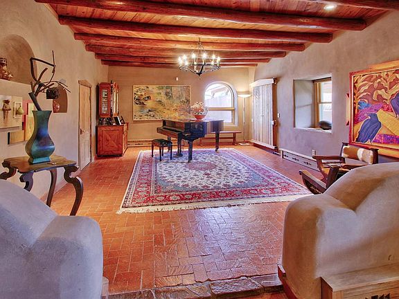 Grande Old World Hacienda updated and re-constructed to meet impeccable standards. Impressive Sala or great room for entertaining. Cozy library and family room. Beautiful baths with talavera tile and modern fixtures. Spacious master suite includes large private office with separate entry.Fabulous modern kitchen with Craig Sowers custom cabinetry and high end fixtures retains old world feeling.Amazing grounds include an orchard, xeric garden, pasture and lawns.Along Rio Grande and Pueblo bosque