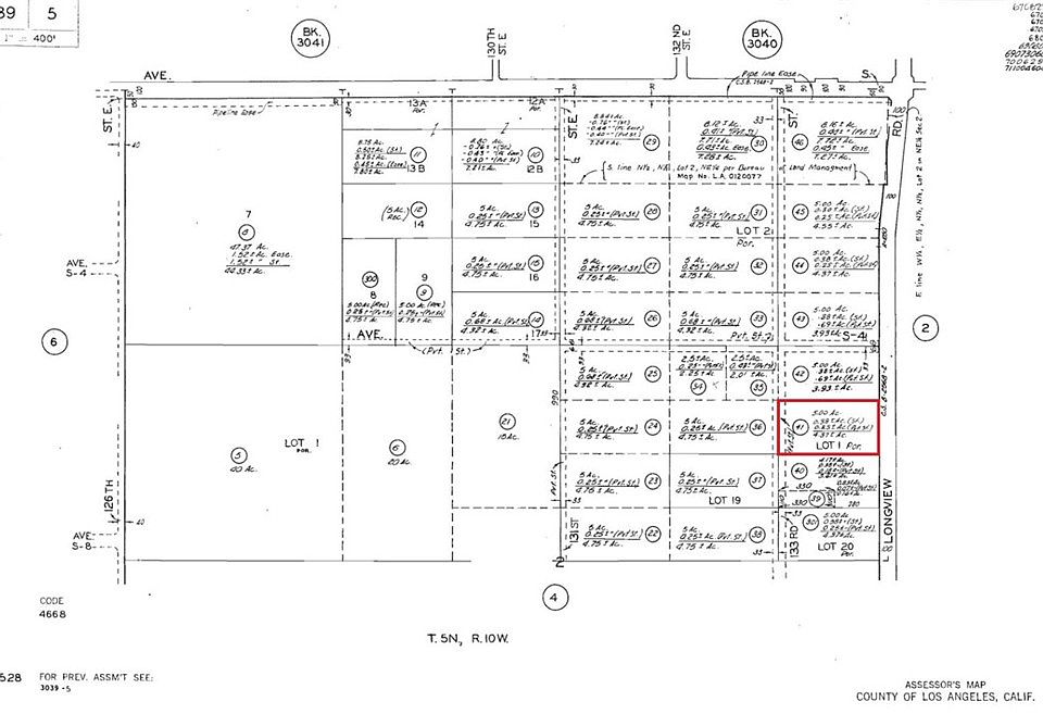 APN: 3039-005-041 Coordinates: 34.552278, -117.890528 4.57 acre lot for sale in LA County. This lot is located near the corner of E Ave T and Longview Rd. Property has frontage on to a paved street and has been cleaned and leveled. Excellent location to build a home in a growing area of LA County.
