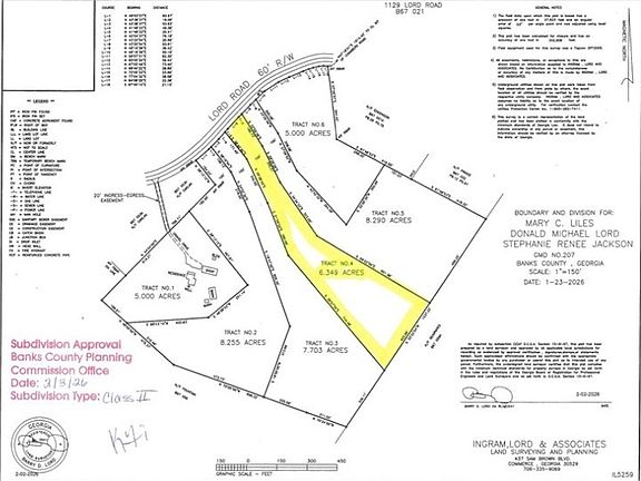 Tract #4 on Lord Road offering a great opportunity to own acreage in Banks County. An approved preliminary plat is attached, with recording currently in process with Banks County. This tract is part of a larger parcel being divided, offering space and flexibility for a future homesite while maintaining a rural setting with convenient access to Commerce and surrounding areas.
