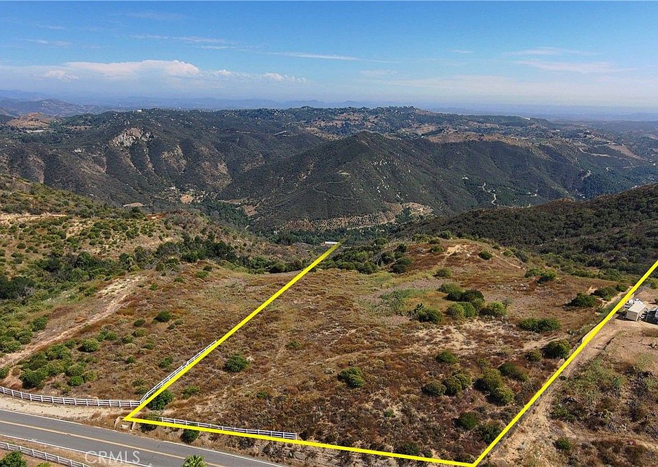 ULTIMATE VIEW LOT on 10 acres in upper De Luz with plenty of flat, usable acreage and a naturally occurring, elevated pad. Incredible, 360 degree, panoramic views of the Temecula Valley below, Palomar Mountain, Santa Ana Mountains, and you can even see the Pacific Ocean on a clear day! Public water and electric are up to the property, and a paved County Road (Los Gatos) goes directly to the property. 2-Inch Full Water Meter Service is available at estimated cost of $ 23,867.00, ½-Inch Full Water Meter $ 17,423.00, 1-Inch Full Water Meter $ 11,201.00. Horse property with abundance of land for livestock, vineyard, or fruit trees. The property is a former avocado orchard and is surrounded by multi-million dollar estate homes and avocado/fruit groves. Bring your dreams and vision and enjoy this property to it's fullest potential!