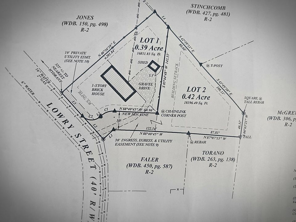 Easement access at the driveway of 811 Lowry St. Plat Map Lot 2