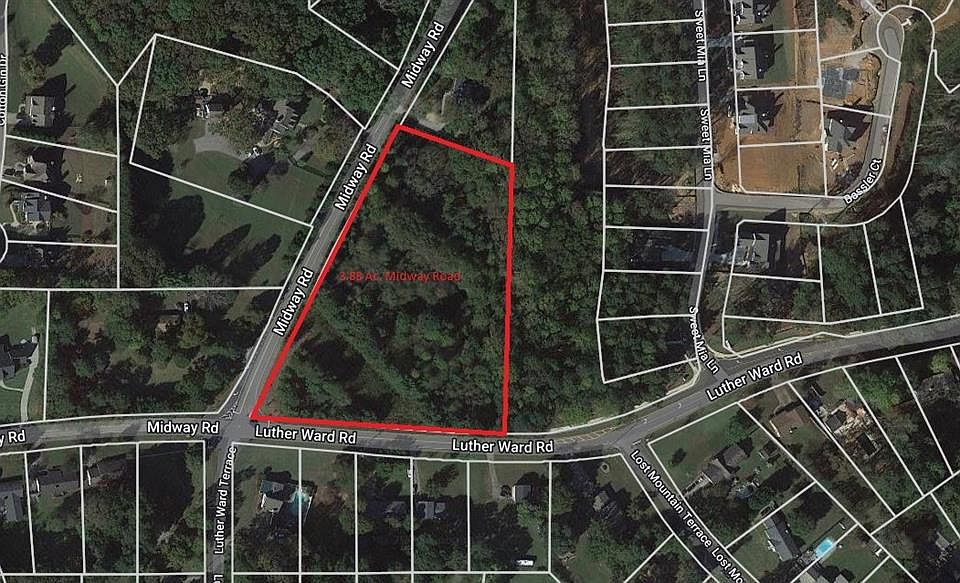 OUR SELLER IS OFFERING FOR A LIMITED TIME 3.88 ACRES OF SERENE RESIDENTIAL LAND IN THE HILLGROVE HIGH SCHOOL DISTRICT. THIS PROPERTY IS CLOSE TO SHOPPING, SCHOOLS & ALL YOUR NEEDS. BUILD THAT DREAM HOME OR A CONCLAVE OF NEW HOMES IN THE HOTEST AREA OF WEST COBB! THIS GENTLY ROLLING TRACT HAS 527 FEET OF ROAD FRONTAGE ON MIDWAY ROAD & 390 FEET ON LUTHER WARD ROAD. PROPERTY IS ZONED R-30, HAS SEWER ON-SITE & CAN POTENTIALLY YEILD UP TO 5 LOTS WITHOUT RE-ZONING. NEW CONSTRUCTION IN THE AREA IS ONE MILLION DOLLARS PLUS. SURVEY, CONCEPTUAL PLANS, AERIAL MAP, TOPO MAP & TAX PLAT AVAILABLE.