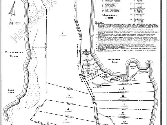 A large wooded parcel with 274 feet on Molasses Pond. There are about 6 acres of dry, very gradually sloping land from the road. The forest becomes quite wet and boggy as you get closer to the shore. At the shore there is a sand/gravel bottom with a gradual descent into the water. There is also a right of way to access the lake from a beach a short distance from the lot. See documents for this listing.