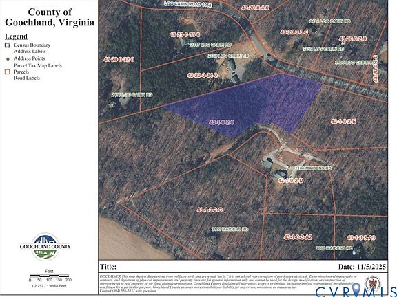 New Homesite totaling 3 acres. Property offers beautiful 80+ year old hardwoods. Located in Maidens VA - Lickinghole District. 2 miles to Goochland's New Elementary School, Middle & High School. 1.5 Miles to J Sargent Reynolds Community College, YMCA, Courthouse & 14 miles to Short Pump. Lot is perked for conventional septic up to 4 bedroom home. Approved driveway access off Log Cabin Road. NO HOA!! Underground Power & Internet (Comcast). Quiet dead end road with absolutely no road noise. Seller has multiple builders available upon request.