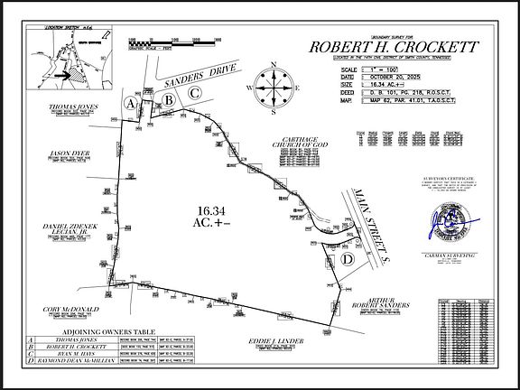 Spacious, unimproved tract in the heart of South Carthage, TN. Offers a lot of potential for future buyer and/or investor. Nice building sight as it is relatively flat on top. There are two access points, one off Main Street and the other off Sanders Drive in Rolling Hills Subdivision. Large mature trees and rambling creek on one side. City sewer and water available at the road. Ideal location in South Carthage.