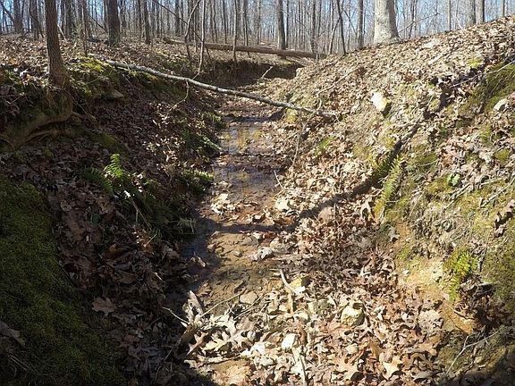 Beautiful rolling 5 acres with creek running through the middle of it. Mature Timber on the whole property. On dead end street.