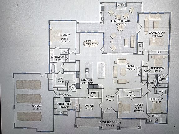 Custom-built ranchLarge covered front porchGame roomUpgraded finishesPrivate acreageExpansive walk-in pantryLarge island