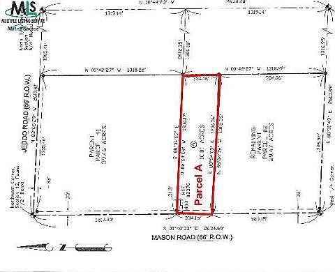 10 Acres in Lynn Township. Approx. 20-25% Wooded. LAND CONTRACT TERMS: $6,500 Down Payment, $265 / Month, 5.5% interest, 5 year balloon, possible extension on Land Contract. Prime building Lot. This property is located across from 8383 Mason Road, look for the orange survey tape and sign for easy identification. There is also an old house on the property, it is located on the North side of the property.