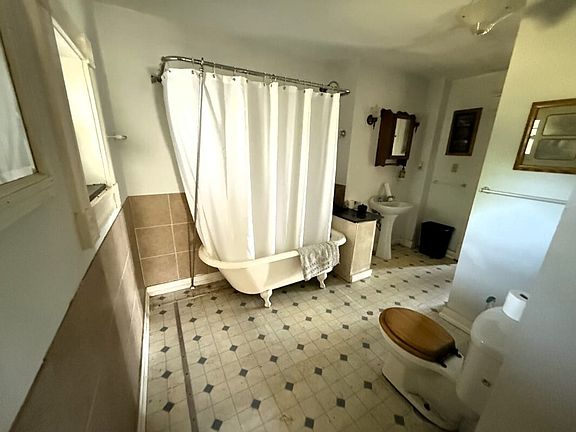 A charming 2-bedroom, 1-bath off-grid cabin serves as your home base. It features vaulted ceilings, a loft area, an attached garage, and even a walk-in cooler for your harvest. The cabin is powered by a generator, with the potential to convert to solar for a more sustainable setup. A 1,000-gallon cistern system collects rainwater from the metal roof, providing ample water supply to the cabin-an efficient design.