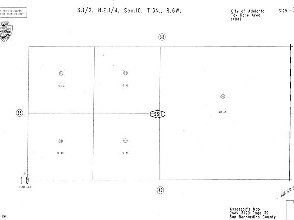 10 ACRES NEAR THE ADELANTO AIRPORT AREA OF INFLUENCE. ***IDEAL SOLAR FARM LOCATION*** AVAILABLE FOR SALE OR LEASE *** This property has many uses, can be commercial, multiple residential, warehouse, solar farm, etc, etc. It is surrounded by the cannabis zone. The progress is coming this way, buy before the price increases. Buyer must perform their own due diligence they should do with any land purchase. This land is sold as is and all information provided is to the best of seller’s knowledge. Seller does not guarantee accuracy of property location on maps or descriptions shown in listing as well as facts describing the property. Buyer to verify all details of property including property location and boundaries and lot lines, as well as feasibility to use property for buyer’s desired purpose.