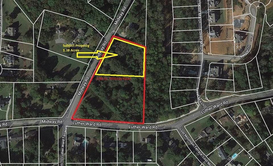 OUR SELLER IS OFFERING FOR A LIMITED TIME 1.38 ACRES OF SERENE RESIDENTIAL LAND IN THE HILLGROVE HIGH SCHOOL DISTRICT. THIS PROPERTY IS CLOSE TO SHOPPING, SCHOOLS & ALL YOUR NEEDS. BUILD THAT DREAM HOME OR A COUPLE OF NEW HOMES IN THE HOTEST AREA OF WEST COBB! THIS GENTLY ROLLING TRACT HAS 280 FEET OF ROAD FRONTAGE ON MIDWAY ROAD, ZONED R-30, HAS SEWER ON-SITE & CAN POTENTIALLY BE SUBDIVIDED INTO 2 LOTS WITHOUT RE-ZONING. NEW CONSTRUCTION IN THE AREA IS ONE MILLION DOLLARS PLUS. SURVEY, CONCEPTUAL PLAN, AERIAL MAP, TOPO MAP & TAX PLAT AVAILABLE