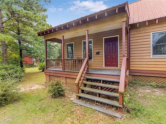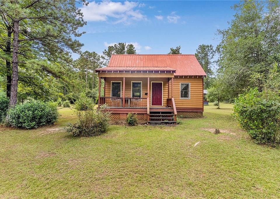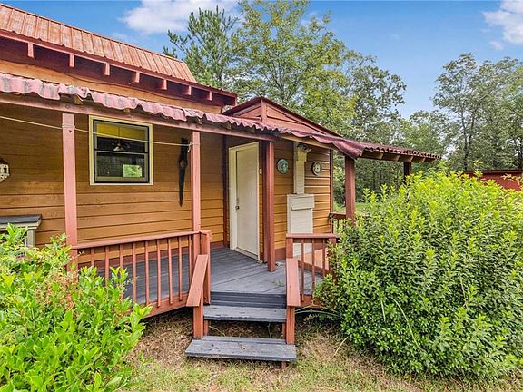 As you drive down this well maintained red clay road, your eyes are opened to an inviting cabin scene, abounding with 30 acres of privacy. The face of the cabin has a covered porch. Upon entering the front door, you are drawn to the electric atmosphere, designed by the owners. It is a one bedroom, one bathroom, open concept living and kitchen area. A bonus room can be accessed through the bedroom or kitchen. From here, you enter a covered back porch with an adjoining laundry room and storage. Engineered blue prints of this cabin, were later featured in Southern Style Magazine. The original blue prints and some furnishings will remain. The exterior of the cabin is constructed with premium red wood cedar purchased in Marysville, Wa. The double hung windows were custom ordered from Barnett Millworks Inc. Termite shields are on each of the 4 corner posts. An 85 foot deep, private well, is the main water source. Water meter has been paid for and installed at frontage box. Option is available for city water, but will need to be connected. The property has two enclosed storage sheds. It is supplied with electric heating and cooling ample storage space in the attic with pull down stairs. A narrative can not begin to describe the beauty and serenity. All measurements are approximate and not guaranteed. All items deemed important are to be verified by the buyers and/or buyers agent.
