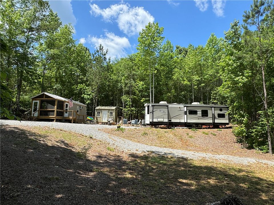 That's your new motto with this fun and affordable destination property, in Jacksons Gap, AL , only minutes to the beautiful shores of Lake Martin. Eleven +/- acres of a peaceful paradise with a babbling brook where you can spend all day getting re-acquainted with nature amongst the large and mature hardwood and pine trees, or for the more adventurous, hit the Lake for some wet fun in the sun. And talk about fishing, people come from all around the country just to spend a day or two angling the deep clean waters of Lake Martin. Don't miss out on this truly rare opportunity to own this wonderful and affordable turn-key destination boasting a 12 x 24 tiny house with a 10 x 12 screened in porch, 40' 2016 well maintained Jayco Camper, shed, fenced pet area and more!