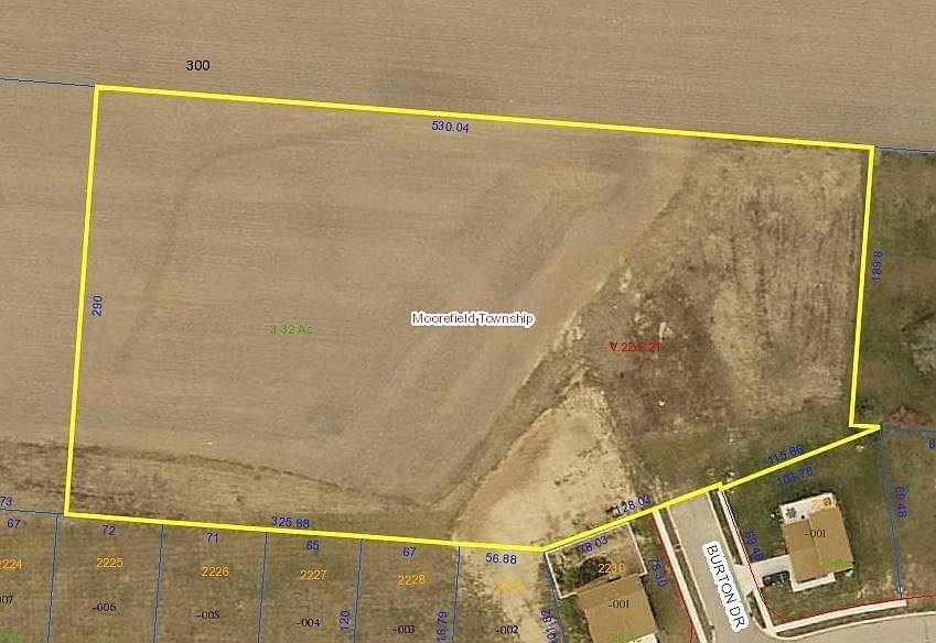 Great opportunity to own over 3 acres in Moorefield township. Located by a newer established subdivision~keep all 3+ acres to yourself or divide and sell a few lots! Entrance to property is off Burton. Supplied water, sanitary sewer and natural gas should be available. Zoned for residential homes & condos. Seller is related to listing agent.