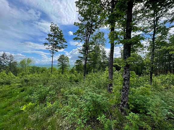 Wooded lot with woods road roughed in to cleared area near top with superb views