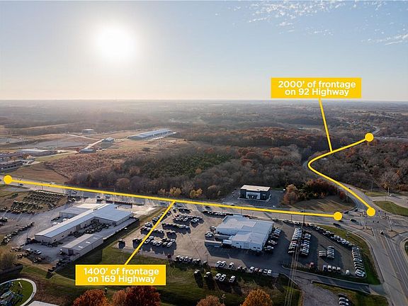 Prime 75.48+/- acre multi-use commercial opportunity positioned at the high-visibility intersection of 169 Highway and State Route 92 in the heart of Smithville, MO. This rare tract offers outstanding development potential with commercial zoning and approximately 1,400 feet of frontage along 169 Highway plus an additional 2,000 feet along 92 Highway. The site benefits from an average traffic count of 26,549 vehicles per day, making it an exceptional location for retail, industrial, mixed-use, or possible multi-family projects.