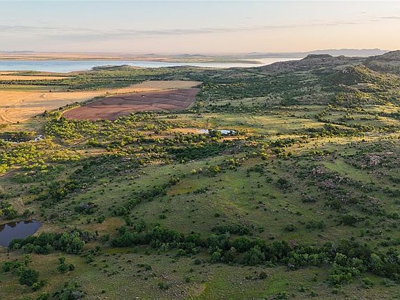 It's not too often a property in southwest Oklahoma features a portion of the Wichita Mountains, nonetheless one with as much diversity as this parcel has. This 474 +/- acres in Kiowa County offers breathtaking scenery from both the highs and lows. With over 300 feet of elevation change, a climb to the top offers a striking perspective of Tom Steed Reservoir and an encompassing panorama of the Great Plains State Park.