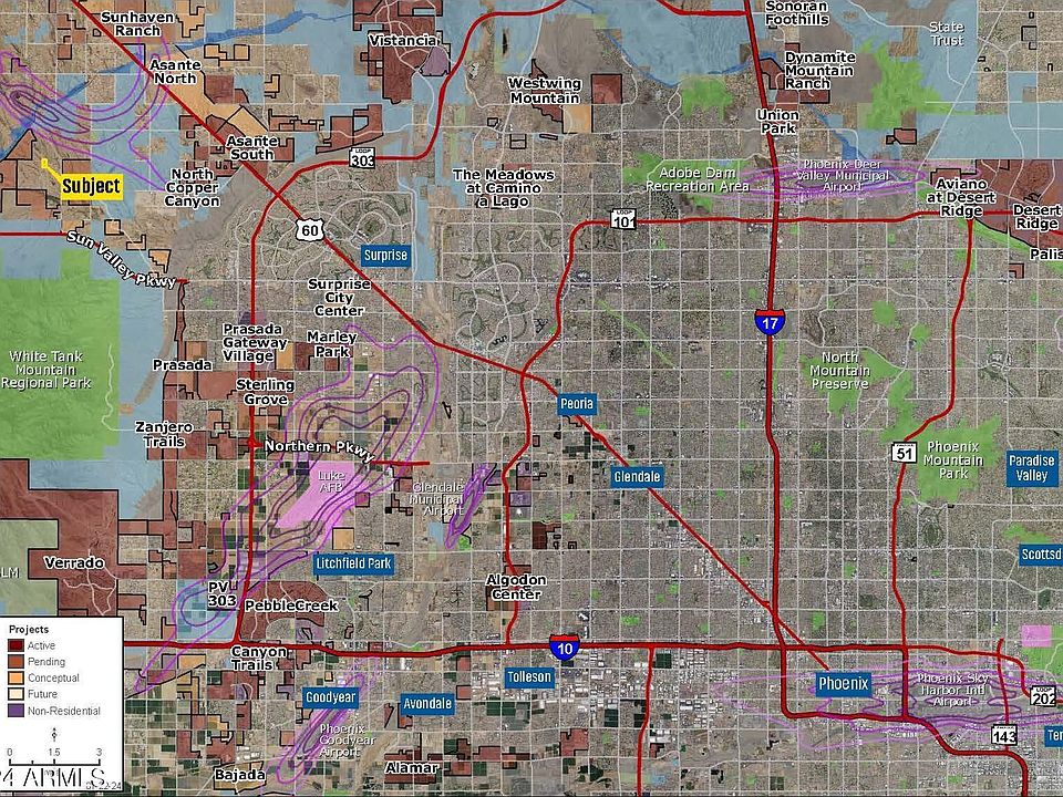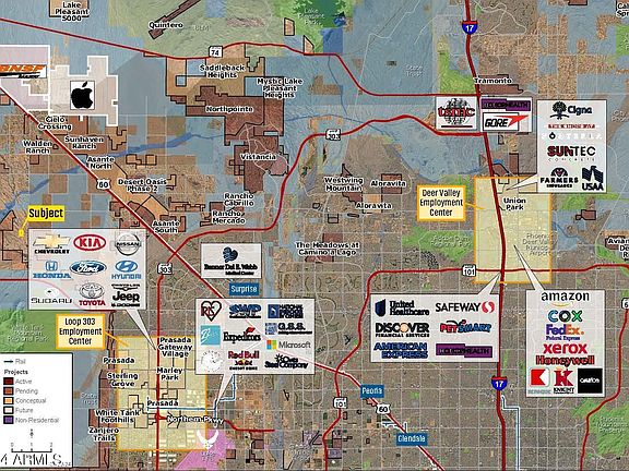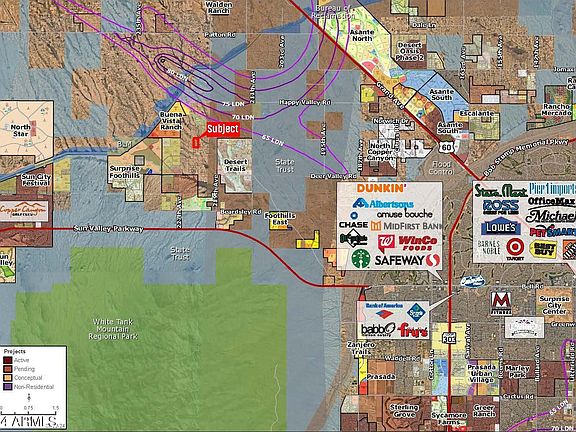 ±16.5 net usable acres available on 223rd Ave & Pinnacle Peak Rd Alignment. Property is within the City of Surprise water and sewer area, line extensions needed to get utilities to the property. Paved access from Sun Valley Pkwy to the property. APS electric needs a line to the property.