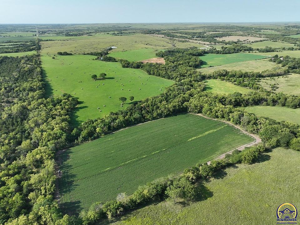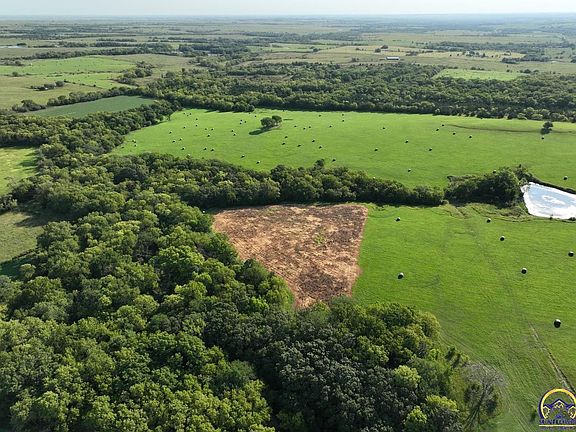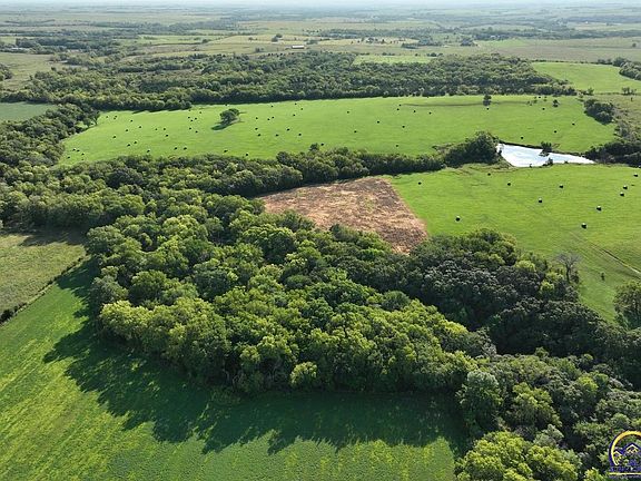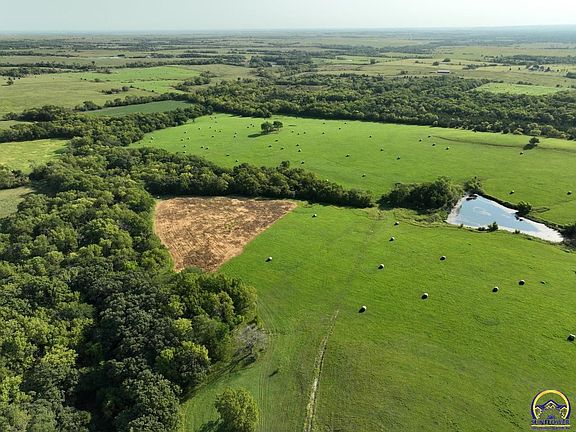 This 94 m/l acre recreational tract has many opportunities for the outdoor enthusiast as well as build site potential. The property hunts BIG for archery and gun hunters alike. Access is no problem with entrances from the northwest and southwest corners off of N Branch Road. The big timbered creek and thick draws allow whitetail deer and wild turkey to stay hidden and have plenty of seclusion away from the roads. Two established food-plots consisting of soybeans and a fall seed blend add additional nutrition for the deer and turkey along with many open areas to expand the plots. There are 35 m/l acres of native hay grass currently being baled for hay production. Oak, walnut, hedge and cedar trees make up the majority of the timber and cover and keep deer bedded on the property. Black walnut is abundant for additional timber harvest income. There are several mature roost trees for the wild turkeys as well. A large pond and creek allow the local wildlife to get water on the property. Located just over a mile and half from K-4 highway and pavement makes for a quick commute to Topeka. There's an additional 95 acres available caddy-corner to the property.