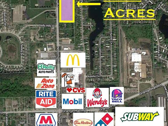 This property sits just north of the busy Grange Hall Rd/ North Holly Rd intersection. With its location on the edge of current development, this property has many possibilities. Property would be great for commercial, residential, multifamily, or PUD.