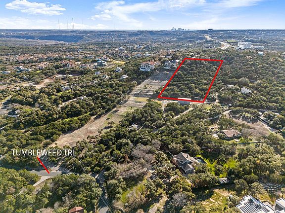 Un-restricted 3 acres in coveted Eanes ISD. Gorgeous Wooded Hillside Lot with Incredible Views for Miles. Property backs to Seven Oaks (potential easement- neighbor has current easement in place) or can access via Tumbleweed Trail. Client is selling off a portion of their property. Contact agent for details. Plat to be finalized after closing.
