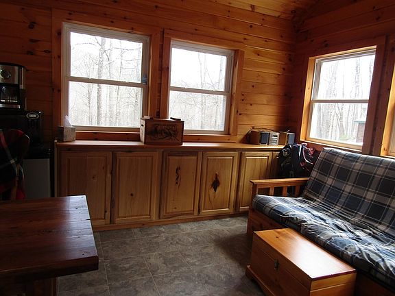 2 acres of quiet getaway property. Small cabin built for hunting stand, or just a place to hang out. Porch overlooking the stream. Small shed also on property for holding lawn equipment.