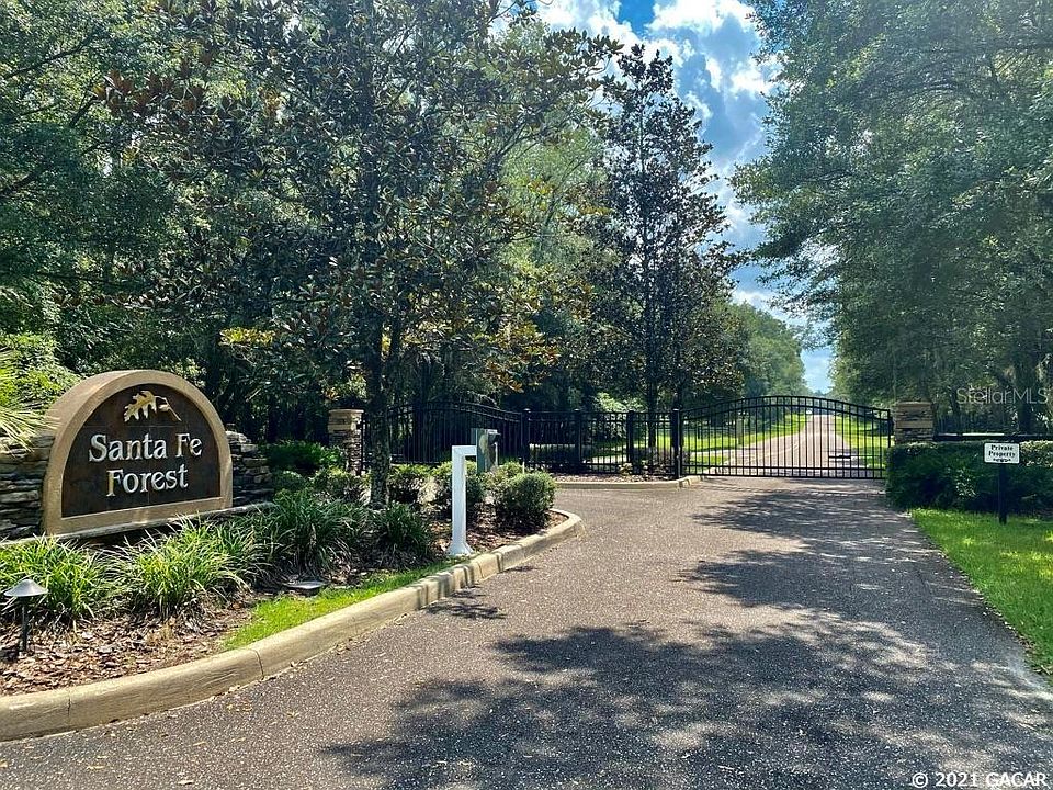Beautiful 5.89 acre wooded lot in upscale gated community. Underground utilities, ready to build- bring your own builder or use ours at under $200/sq ft! 2800 sq.ft. building minimum. Santa Fe Forest is located between Gainesville and Alachua- close to Gainesville and the Alachua/High Springs and Newberry area- offering country living in a beautiful gated community and yet close enough to shopping, restaurants, schools and I-75. Open Builder.
