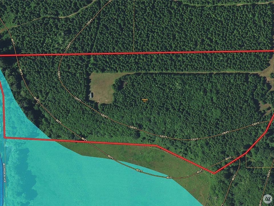 - Features: Comm. Grade Timber, Evergreens, Heavily Forested, Partially Cleared, Stream/Creek