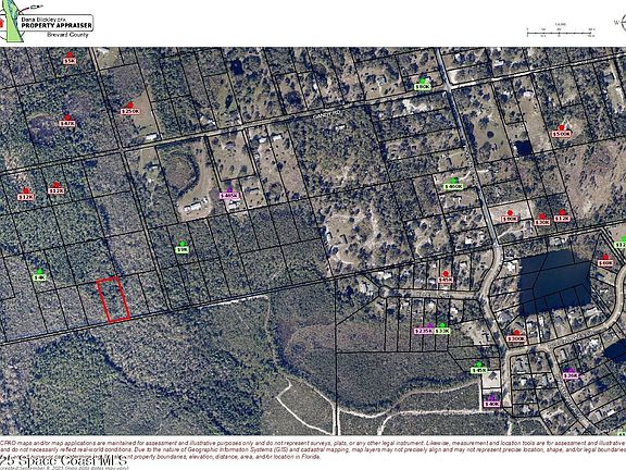 1.19 acre parcel. 165 front ft and 330 ft deep. Good for recreational purposes. No current road leads to the property. Where Gandy Road in Mims ends on the west side the property is about 1320 ft away. NO HOA. Raw land.